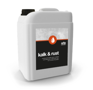 Arita Construction kalk & rust er et konsentrert vanntynnbart rensemiddel som effektivt fjerner kalk, rust, sementslør, saltutfellinger, fugeslør, rester etter fliselim og overflødige mørtel/betongspill på betong, teglstein keramiske fliser, naturstein o.l. (må ikke brukes på polert marmor/skifer) Kan også brukes til rens og vask av kalkavleiringer og rust på sanitærutstyr på toalett og garderobeanlegg.