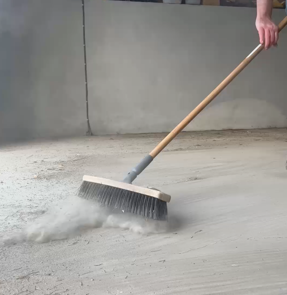 7) Hell et nytt lag med hsg på gulvet og spre utover med en mopp.